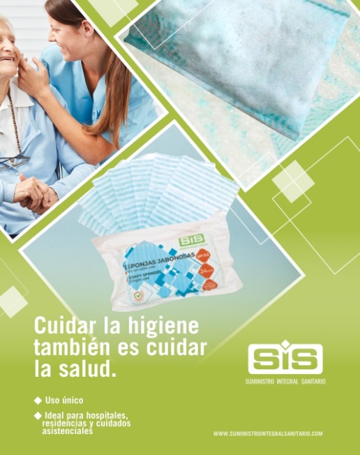 Esponja jabonosa higiénica, especialmente indicada para uso sanitario y asistencial, desechable y reciclable, lista para liberar todas sus propiedades en el momento que entra en contacto con el agua. Esponja ideal para uso en centros geriátricos, hospitalarios.